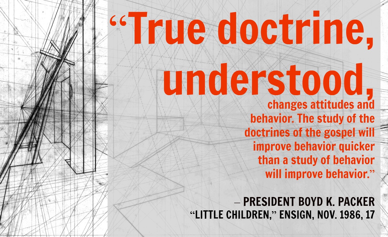 One thing I love about President Packer is his bold adherence to doctrine. He does not shy away from truth, even when it is unpopular or unwelcome. He and the late J. Reuben Clark have been my most profound mentors about teaching the gospel; they both advocated teaching pure doctrine and having faith that people (especially youth) are eager and hungry to hear it and understand it. This quote by Elder Packer has been a mantra to me in my role as a mother, a teacher, while serving in church callings, and in my relationships. It holds the key to any kind of meaningful change: